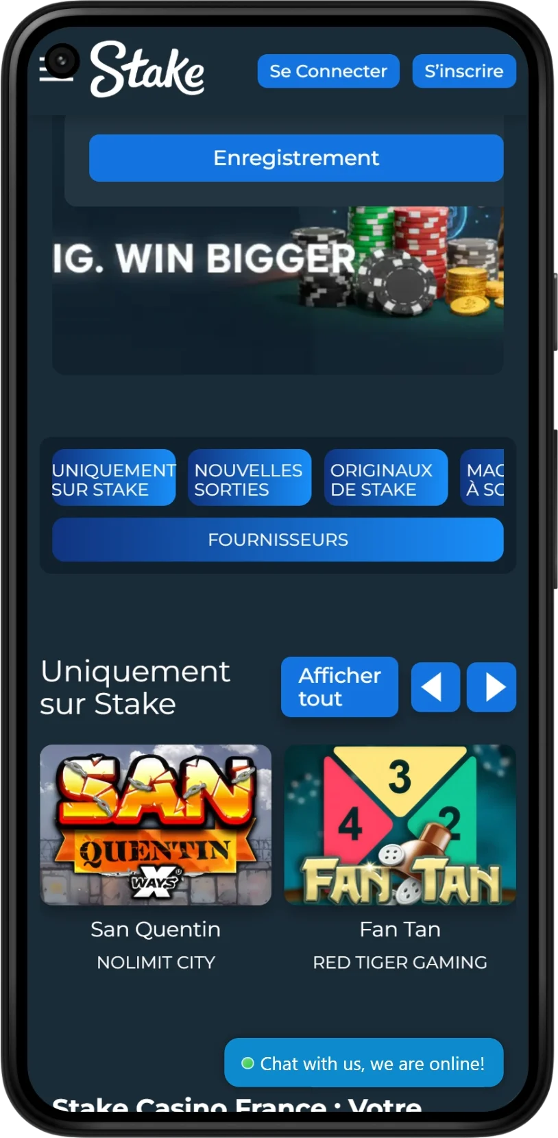 Si vous explorez nos stake jeux, vous remarquerez une philosophie constante : rendre l’accès simple, l’expérience immersive, et la variété réelle. Nous ajoutons régulièrement de nouveaux titres, notamment dans la sélection Originals, afin de maintenir une sensation de nouveauté et de rythme.