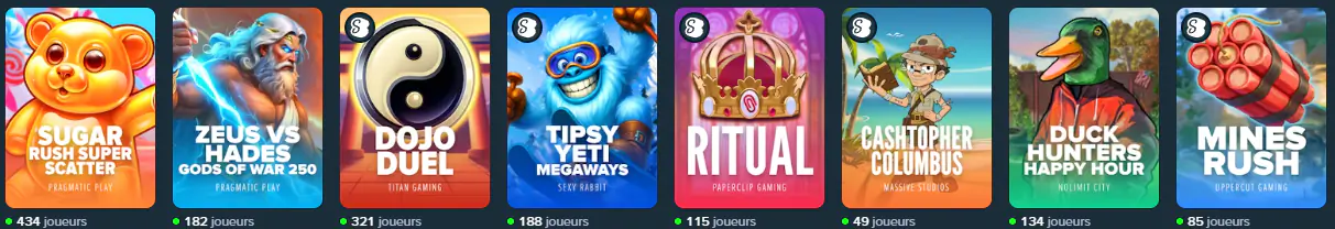 Un univers premium repose sur ses partenaires. Pour garantir une qualité constante, nous travaillons avec des studios reconnus — de vrais “maîtres” du logiciel iGaming — afin d’assurer une expérience stable, riche et visuellement soignée. Sur notre site, nous mettons en avant des éditeurs majeurs comme Pragmatic Play, Evolution Gaming et Hacksaw Gaming, aux côtés d’autres fournisseurs réputés.